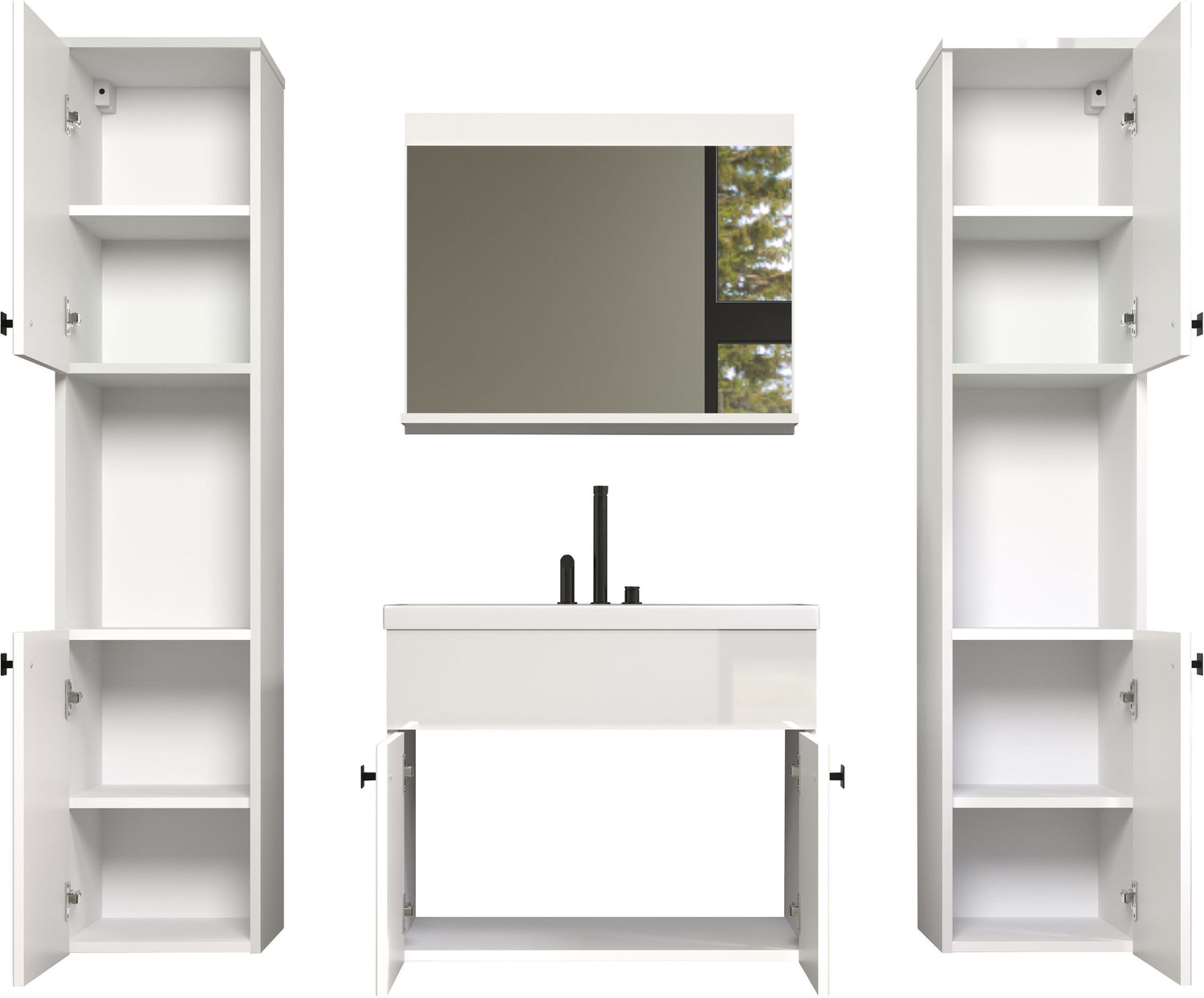 Salle de bain complete - Blanc brillant - 2 colonnes a suspendre + Meuble vasque + miroir - HAVEN