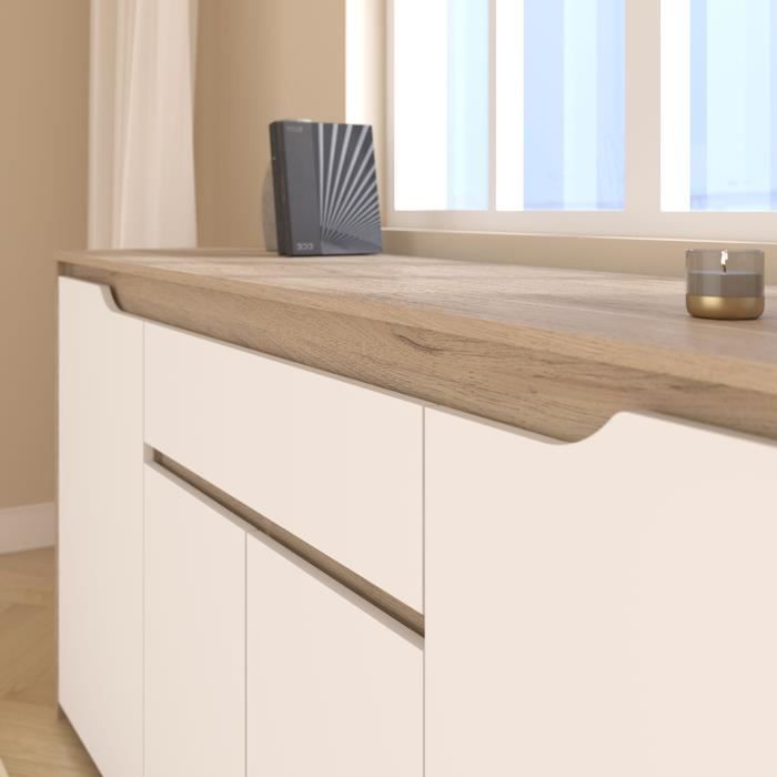 Buffet bas - BETTY- Panneaux de particules - Blanc / Chene - 4 portes – Tradiscount