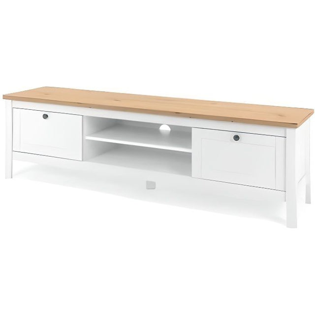 Meuble TV 2 tiroirs - Décor chene artisan et blanc - L 160 x P 45 x H 40 cm - BERGEN