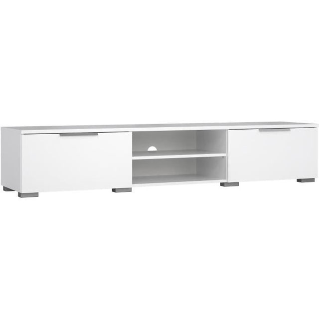Meuble TV - MATCH - Blanc laqué brillant - 2 tiroirs, une niche - 172,7 x 39,9 x 33,1 cm