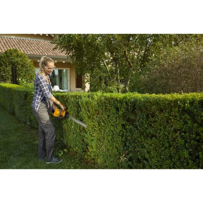 Le HT 100e Kit est un taille-haies sans fil qui facilite grandement les t‚ches de jardinage les plus dures. Aucun c‚ble ne risquant de croiser votre chemin, vous avez l'entiere libertÈ de laisser la lame double de 55 cm de long en acier trempÈ tailler vos haies et vos arbustes avec la plus grande prÈcision.