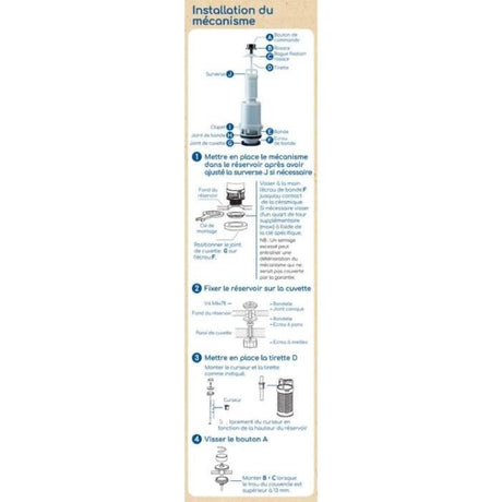Kit chasse d'eau a tirette - ROUSSEAU - Certifié NF - Silencieux - Anti-siphonage - Réglable