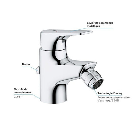 Mitigeur monocommande bidet - GROHE - Start Flow - Hauteur sous bec 46mm - Economie d'eau - Chromé
