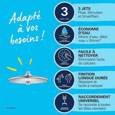GROHE - Douche de tete Vitalio Joy 260 - 3 jets - chromé - raccords filetés 1/2 - économie d'eau