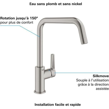 €67,14Grundpreis /Nicht verfügbarBegrenzter Vorrat (12 Einheiten)Mitigeur de cuisine Kiloo - ROUSSEAU - Sans douchette - Gris chromé - Style moderne - Économie d'eau