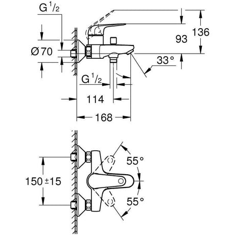 €53,88Grundpreis /Nicht verfügbar Mitigeur lavabo mural - GROHE - Essence - 2 trous - Taille M - Finition Hard Graphite