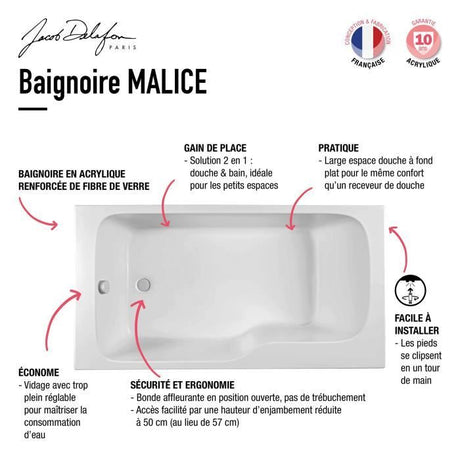 €278,76Grundpreis /Nicht verfügbarSehr geringer Bestand (4 Einheiten)Baignoire rectangulaire Bain-douche Malice 160 x85 cm Blanche Jacob Delafon E6D146R-00