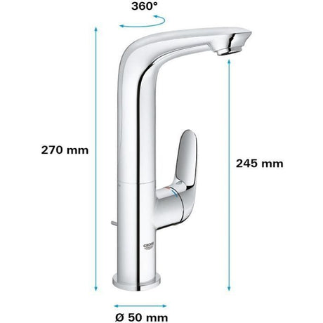 GROHE Mitigeur monocommande Lavabo Taille L Wave Chromé 23584001