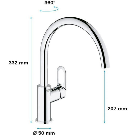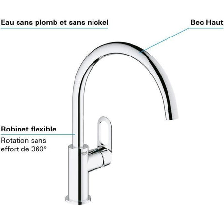 Robinet de cuisine évier monocommande BAULOOP bec haut pivotant - GROHE 31368001