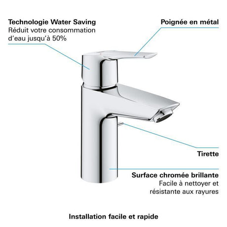 Mitigeur lavabo monocommande chromé - GROHE - START - Economie d'eau - Garantie 5 ans - pieces
