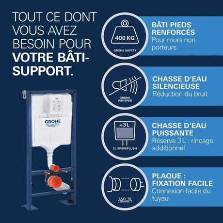 Mitigeur monocommande Bain / Douche - GROHE - Start Edge - Chromé - Economie d'eau - Garantie 5 ans
