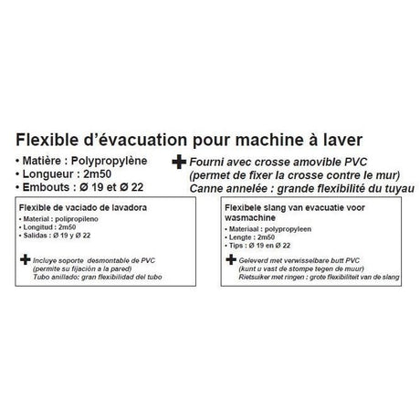 Flexible d'évacuation pour machine a laver - ROUSSEAU - 2.50 m - Embouts Ø19 mm et Ø22 mm