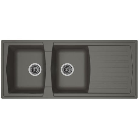 STRADOUR Evier cuisine a encastrer 2 bacs + 1 égouttoir Arena - Résine - 116 x 50 cm - Gris béton