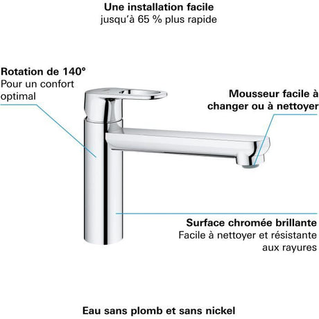 €19,40Grundpreis /Nicht verfügbarSehr geringer Bestand (3 Einheiten)Mitigeur de cuisine GROHE StartLoop - Chromé - Bec haut en C - Mousseur extractible - 30556000