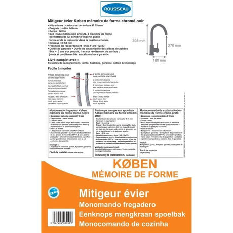 €72,20Grundpreis /Nicht verfügbar Edouard Rousseau - Mitigeur Evier a mémoire de forme KOBEN - Noir / Chromé