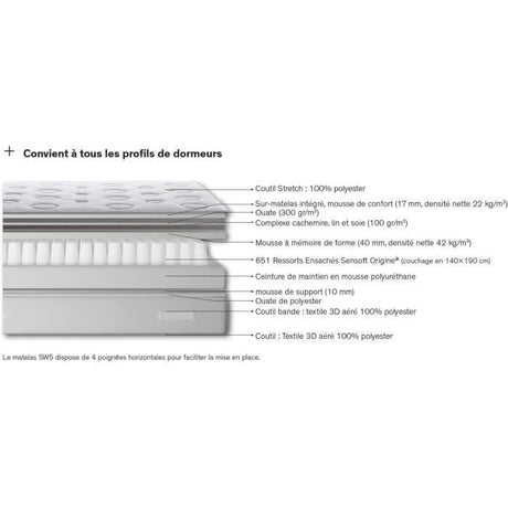 Ensemble matelas + sommier UNELMA 90 x 190 - 5 zones et mémoire de forme - 16 cm - DEKO DREAM