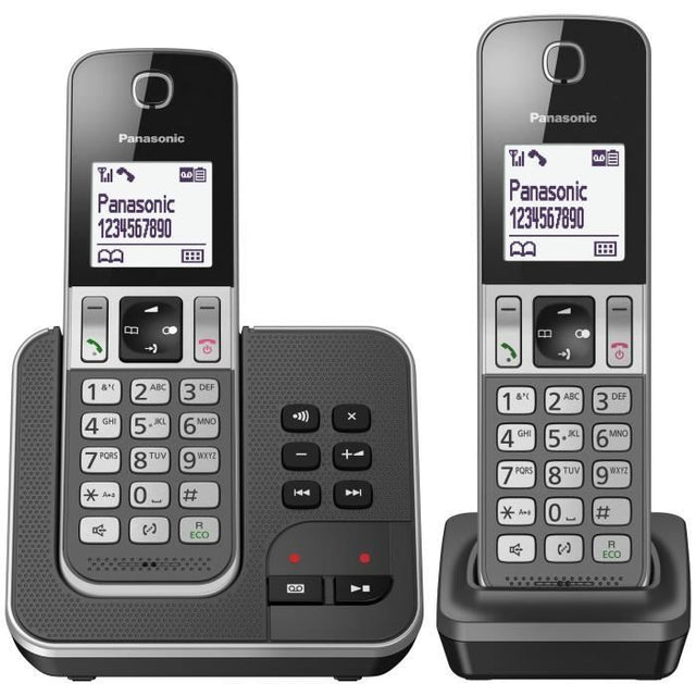Panasonic KX-TGD322FRG Téléphone sans Fil Répondeur Numérique, Base et 2 Combinés, Mains Libres, Identification de l'Appelant
