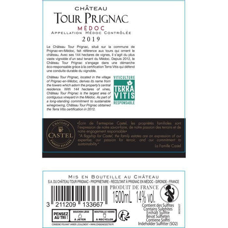 Magnum Coffret Cadeau Caisse - Château Tour Prignac Médoc Cru Bourgeois - Vin Rouge de Bordeaux 2019
