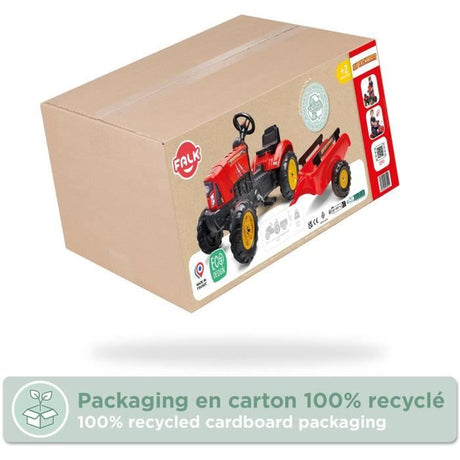 Tracteur a pédales Supercharger rouge FALK avec capot ouvrant et remorque