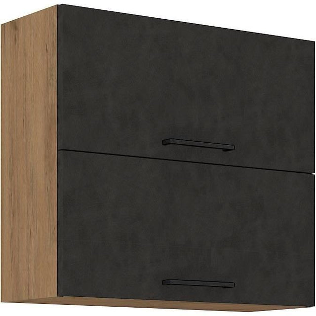Meuble haut ROCK de style classique et intemporel. Caissons et partie haute des faÁades en imitation bois chene Lancelot. Finition mate. 2 portes basculantes. Dimensions : L80 x PNaN x H72 cm.