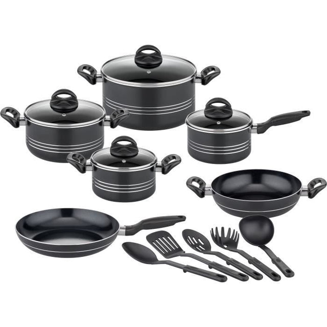Batterie de cuisine - Induction - GSW - MILANO NERO - 15 pieces - Aluminium massif - Noir