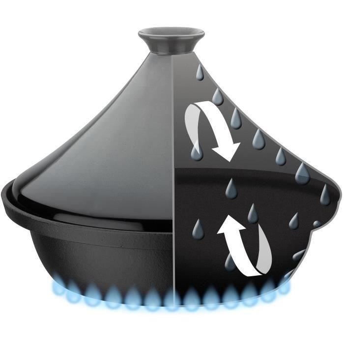 Tajine fonte massive - GSW - 30 x 22 cm - Couvercle céramique - Induction - Gris