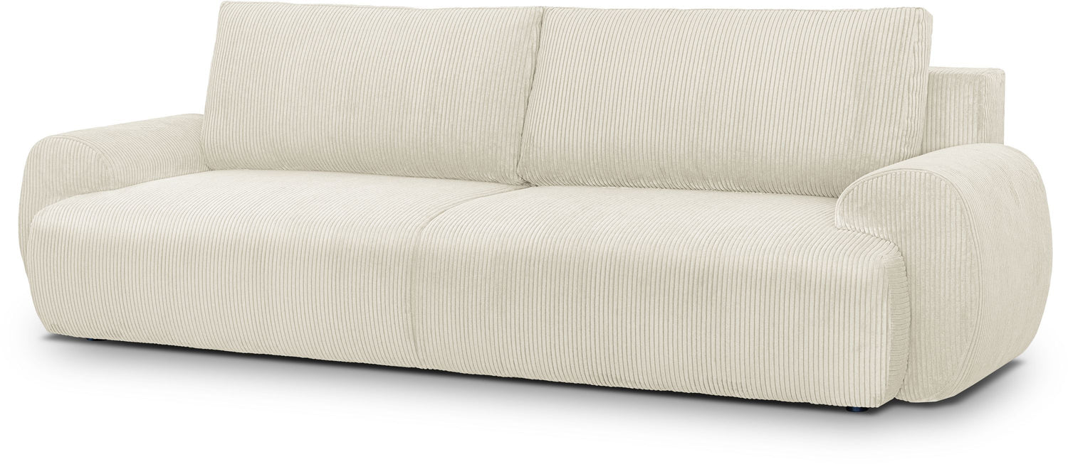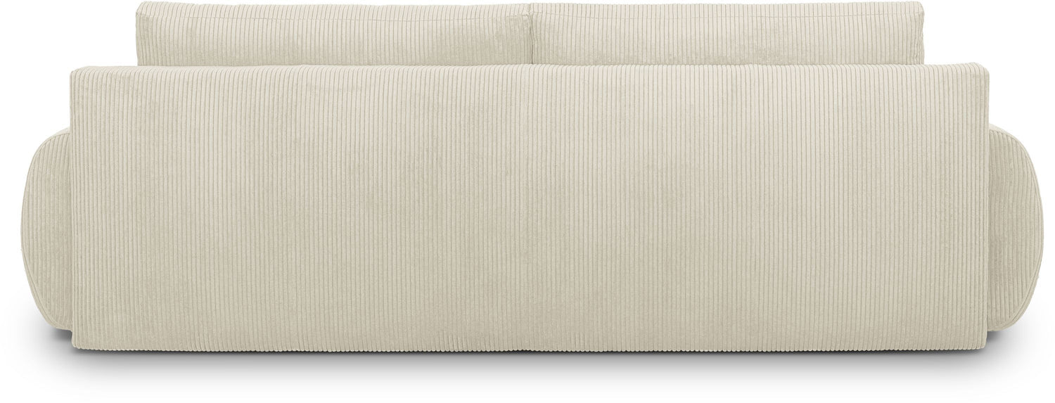 Canapé convertible - 3 places - MILO - Tissu velours côtelé Beige - Coffre de rangement - 254 x 99 x 84 cm