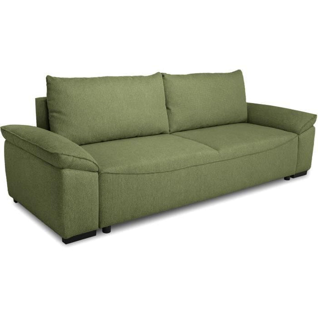 Canapé convertible avec coffre - 3 a 4 places - NORMAN - Tissu olive - 240 x 85 x 85 cm