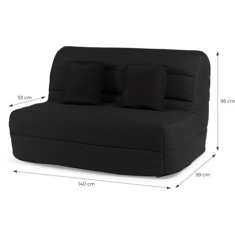 DUNLOPILLO Banquette BZ - Tissu Noir + 2 coussins noir - L 140 x P 99 x H 98 cm ALICE