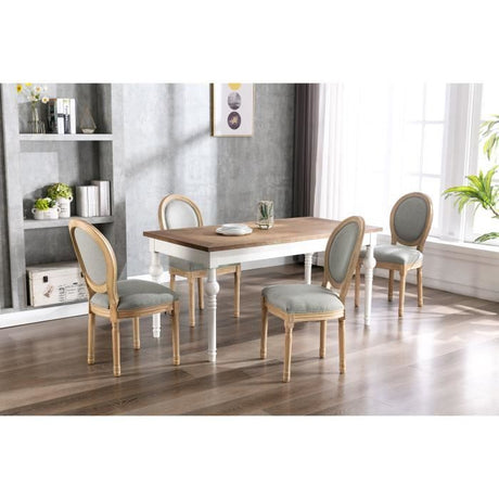 GRETA Lot de 2 chaises mÈdaillon - Pied bois - Tissu Gris - L 49 x P 56 x H 96 cm