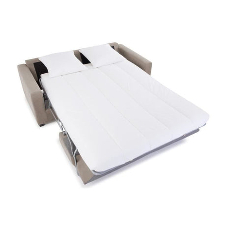 DUNLOPILLO Banquette BZ 2 places - Tissu Taupe + 2 coussins noir - L 140 x P 99 x H 98 cm - ALICE -