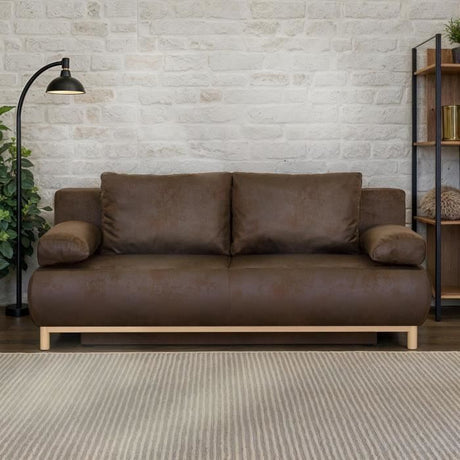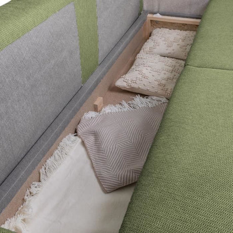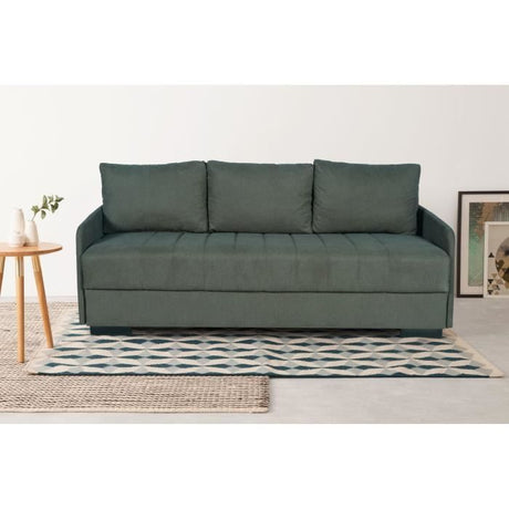 Canapé convertible 3 places JOSH - Tissu Loft Olive - Coffre de rangement - L 239 x P 117 x H 65 cm