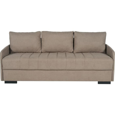 Canapé convertible avec coffre - 3 a 4 places - NORMAN - Tissu beige - 240 x 85 x 85 cm