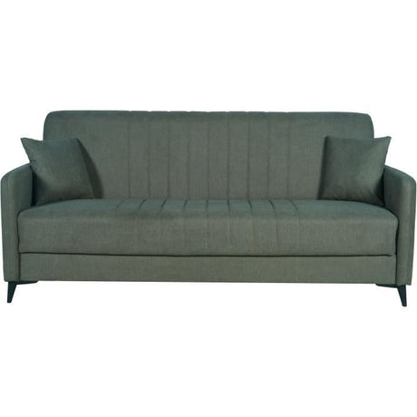 Canapé convertible avec coffre - 3 a 4 places - NORMAN - Tissu olive - 240 x 85 x 85 cm