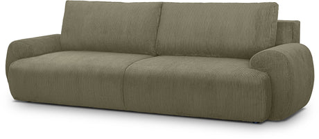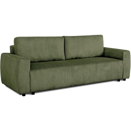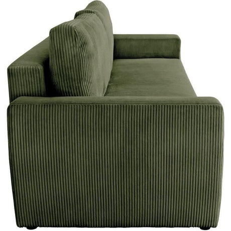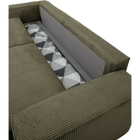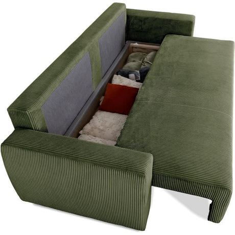 Canapé convertible 3 places - BARI - Velours cotelé - Kaki - Coffre de rangement - 215 x 89 x 100 cm
