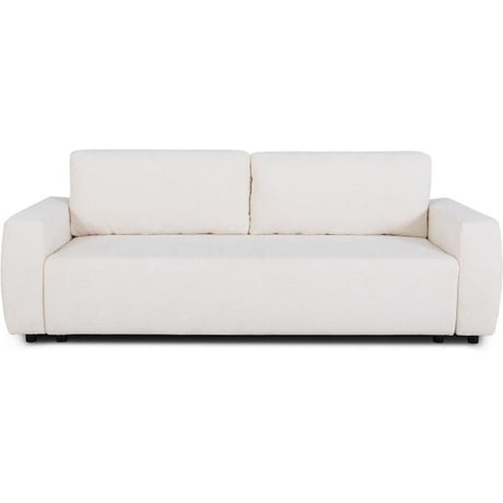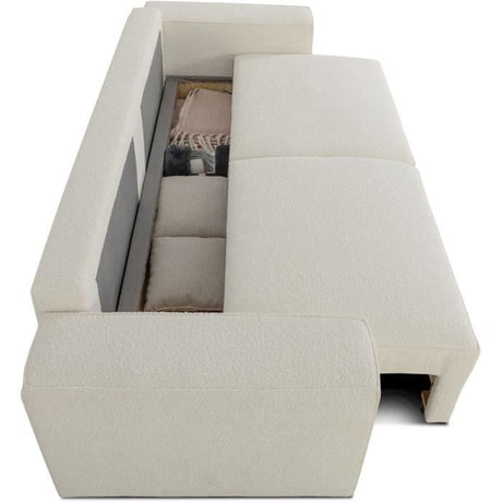 Canapé convertible 3 places - JOSH - Tissu bouclette Creme - Coffre de rangement - 239 x 86 x 85 cm