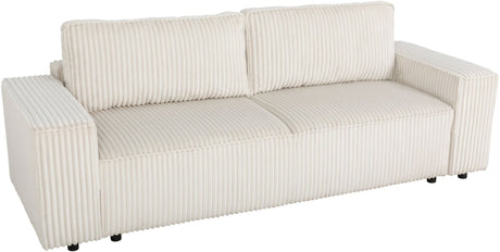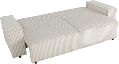 Canapé convertible 3 places - JOSH - Tissu velours grosses côtes Pearl - Coffre - 239 x 86 x 85 cm