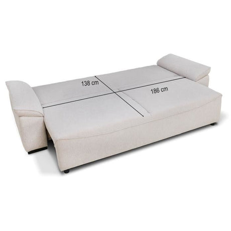 Canapé convertible - 3 places - PHARELL - Tissu Bouclette Beige - Coffre - 231 x 91 x 84 cm