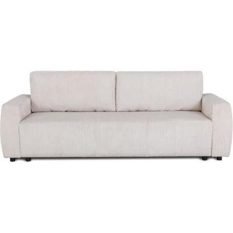 Canapé convertible - 3 places - PHARELL - Tissu Velours côtelé Beige - Coffre - 231 x 84 x 91 cm