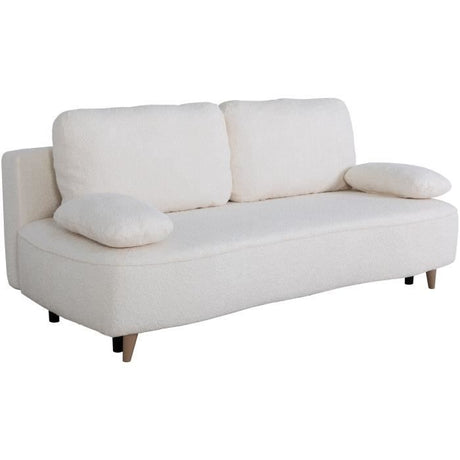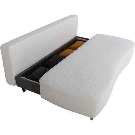Canapé converible - 3 places - PYLA - Bouclette blanche - Coffre - 203 x 95 x 89 cm