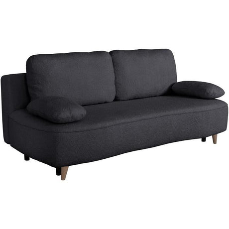 Canapé converible - 3 places - PYLA - Bouclette Noir - Coffre - 203 x 95 x 89 cm