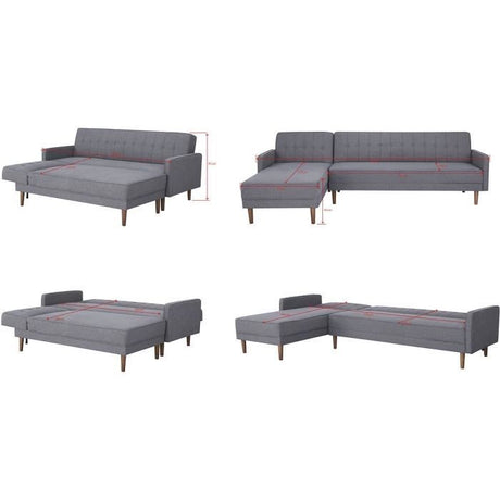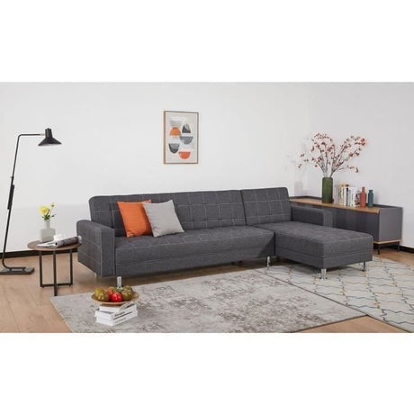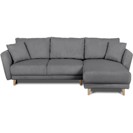 CanapÈ d'angle convertible - Tissu Gris - L 197 x P 91/132 x H 82 cm - TEIJO