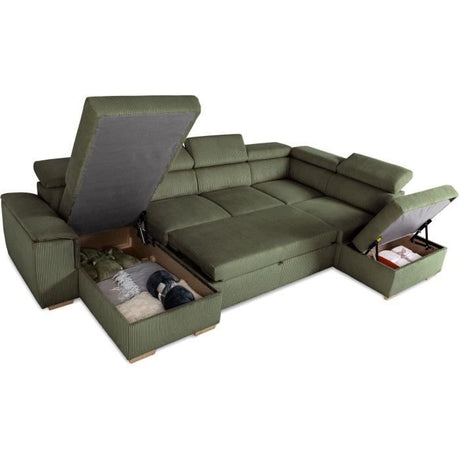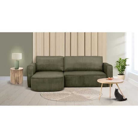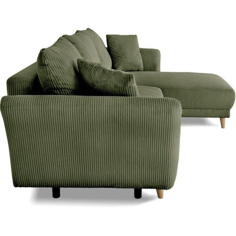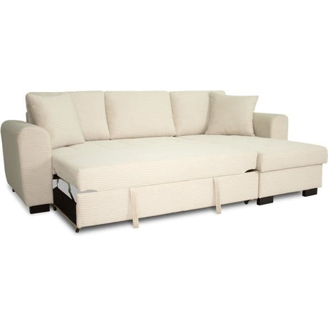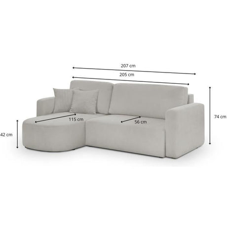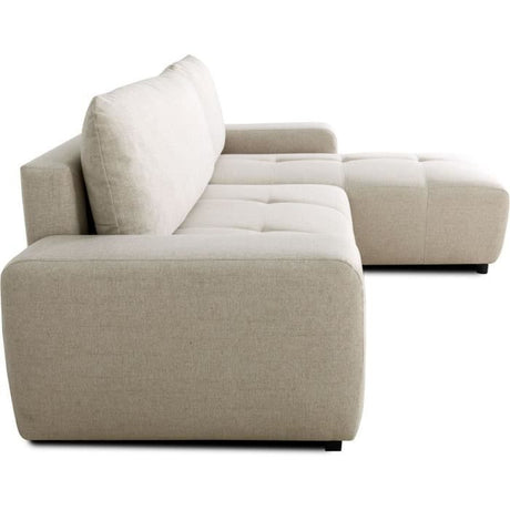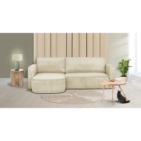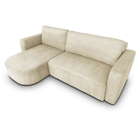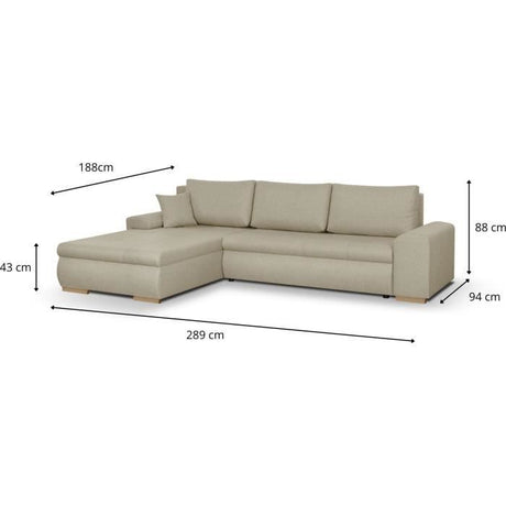 €572,06Unit price /Unavailable Canapé d'angle convertible - MORGAN - 3 places - Beige avec coffre et coussins déco - 236x143x85cm