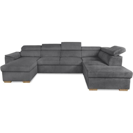 Canapé d'angle convertible et réversible 5 places INDIAN - Tissu gris clair et anthracite