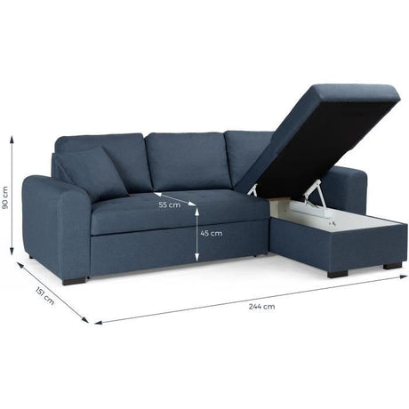 CanapÈ d'angle convertible 3-4 places STEWART - Tissu bleu - L224 x H85 x P155 cm