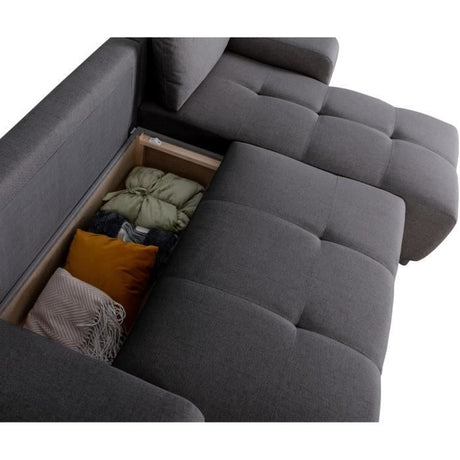 CanapÈ d'angle convertible - MORGAN - 3 places - Gris clair avec coffre 236x143x85cm