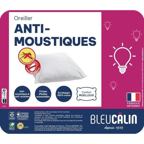 €25,86Unit price /Unavailable Oreiller anti-moustiques - 60 x 60 cm - Moelleux - BLEU CALIN - Blanc