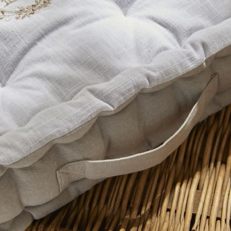 Coussin de sol - TODAY - CHARME - Slub x Chambray x Broderie Berenice - 40 x 40 x 10 cm