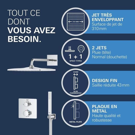 €28,47Unit price /Unavailable Ensemble de douche encastré - 1 jet - Mitigeur thermostatique - GROHE - 34881000 - Gris