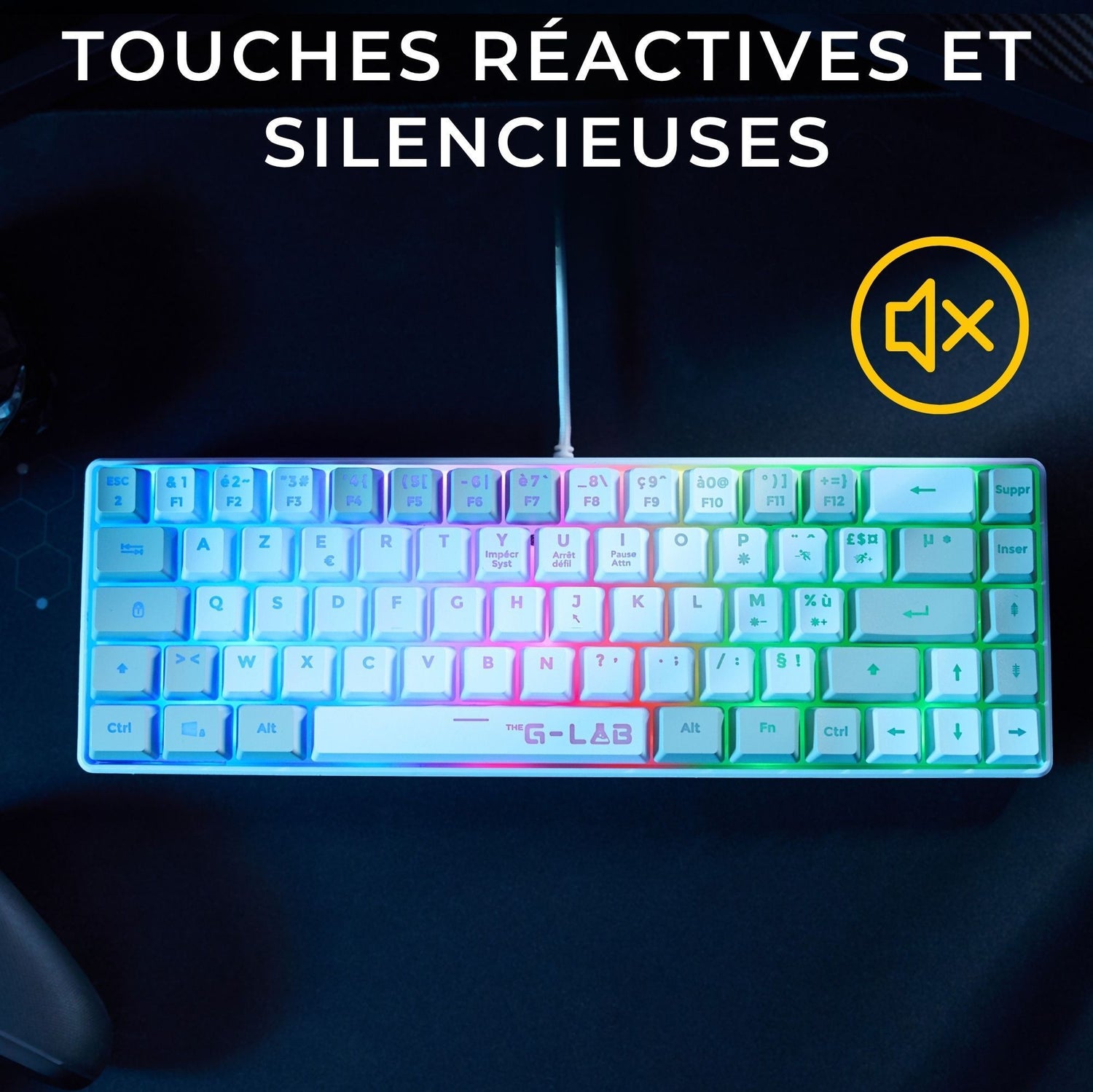 Clavier Gamer filaire - THE G-LAB - KEYZ-HYDRO-WG/FR - 60% format compact - AZERTY - Rétroéclairé - Gris/Blanc